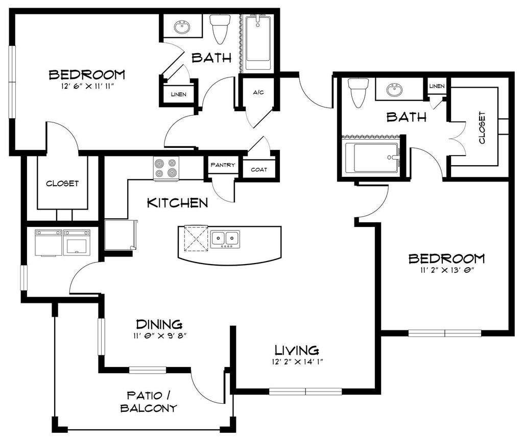 Apartment Model: A2From $1,2401 Bedroom, 1 Bath, 806 sq ftAvailable Now![]()