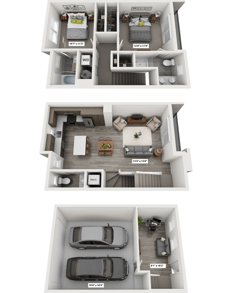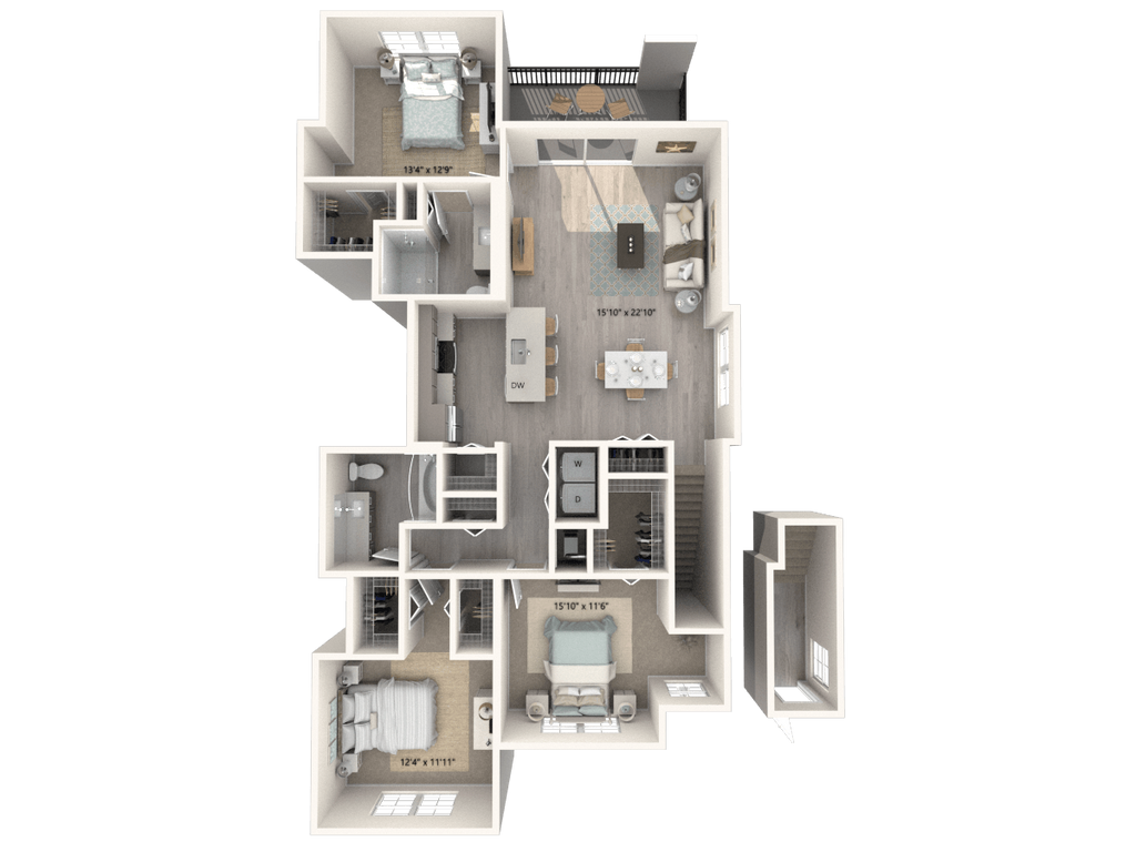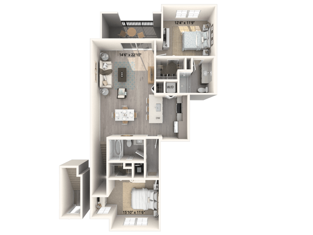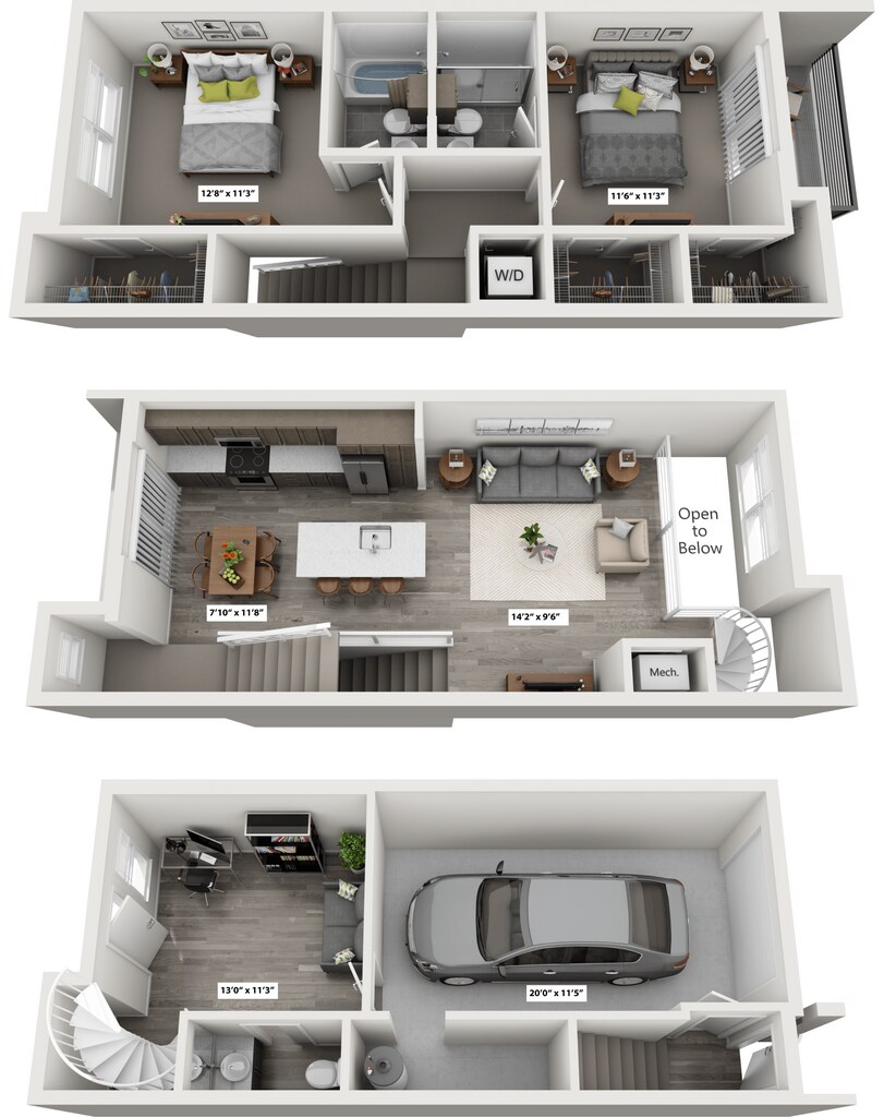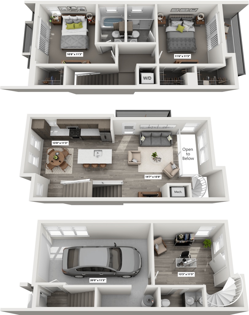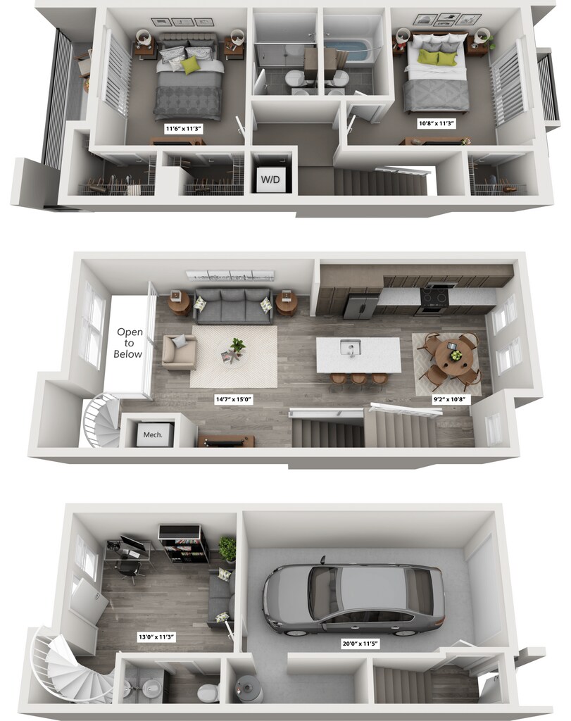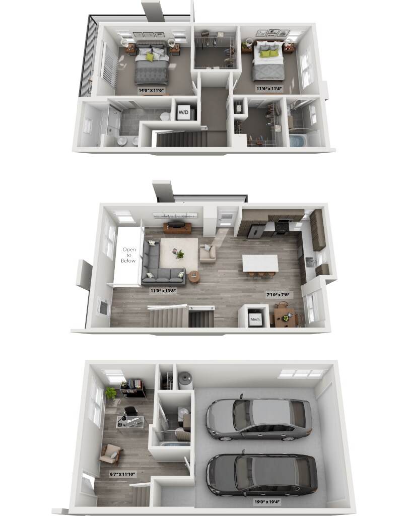 - Loft-style living rooms in select townhomes