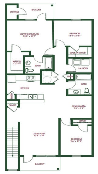 2 Bedroom - Floorplan 1 3 Bedrooms
