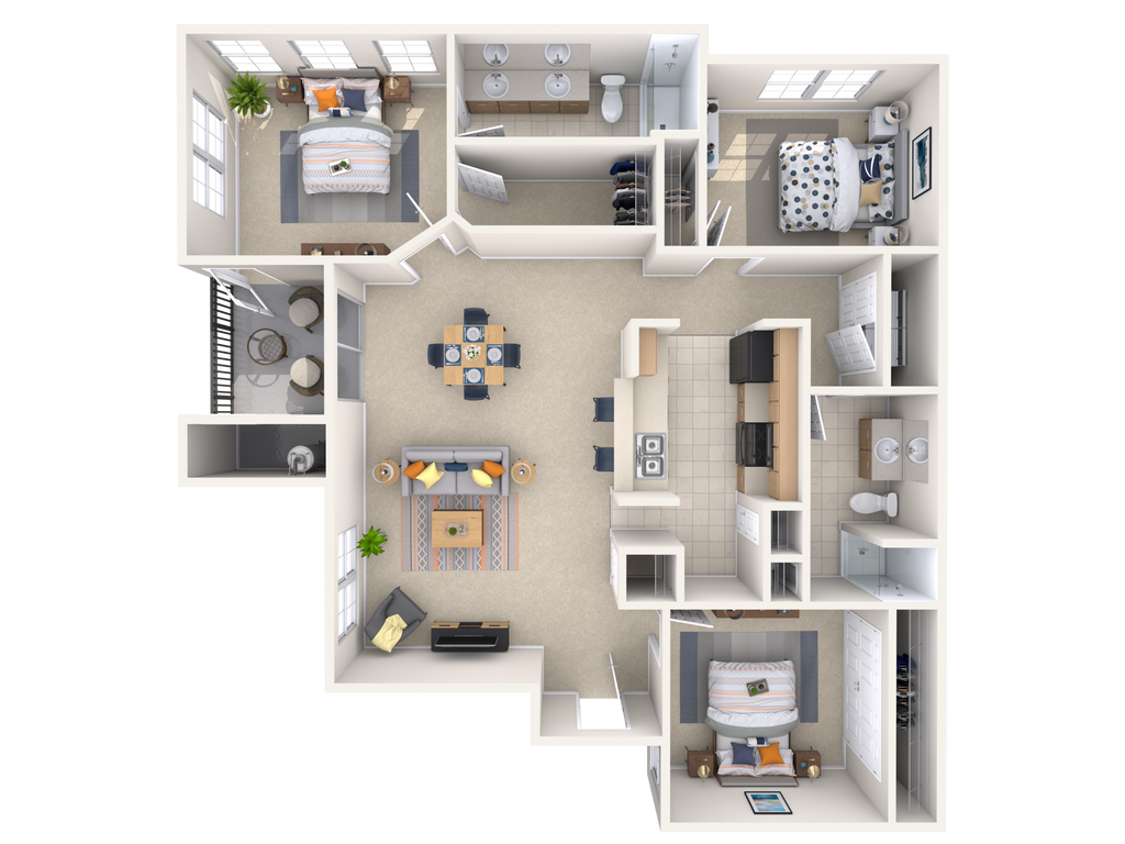 1 Bedroom to 3 Bedroom Apartments at Bella Mirage currently range from $1,017 to $1,943