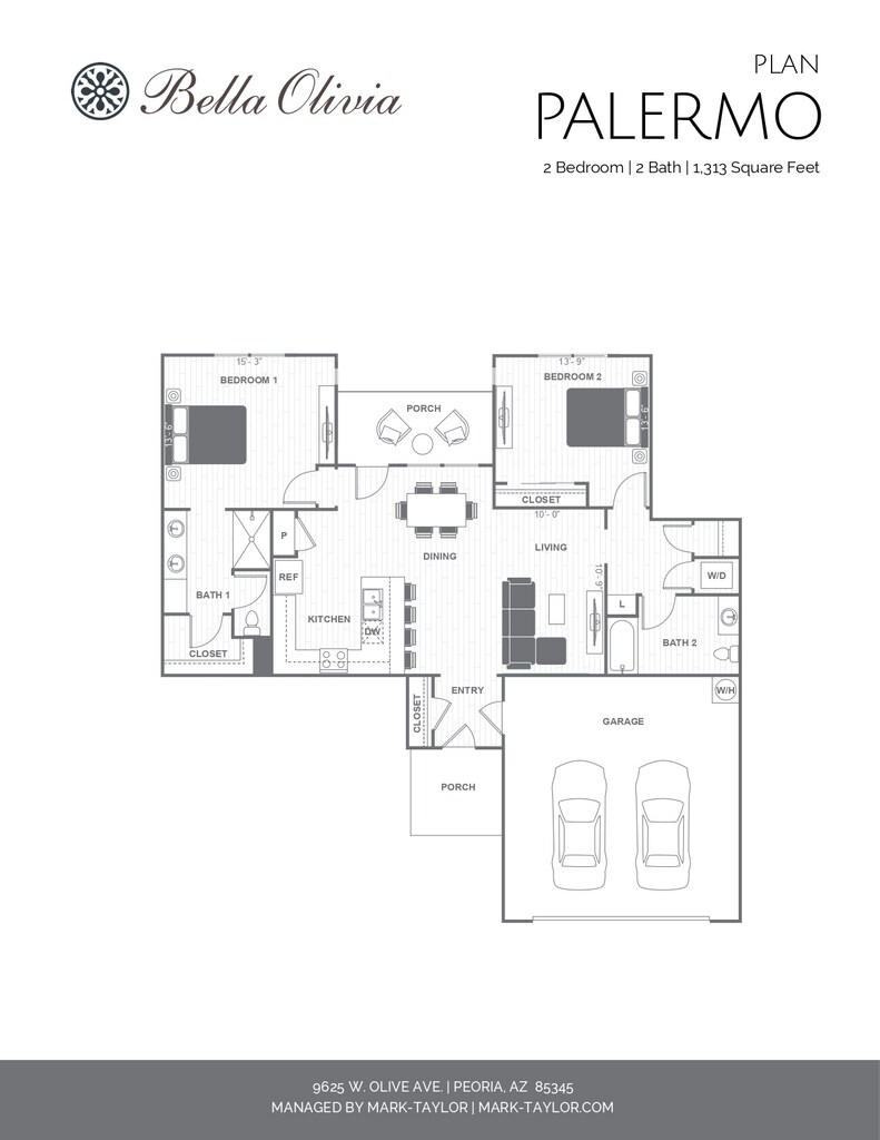 2 Bed/2 Bath - Floorplan 2 2 Bed/2 Bath