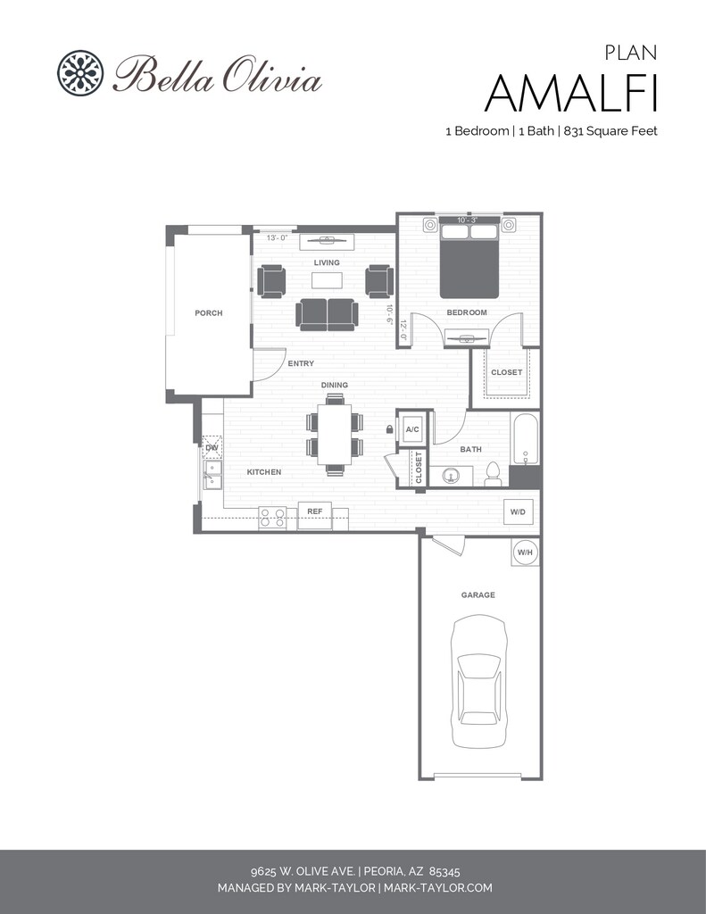 1 Bed, 1 Bath, 831 sq ftModel Gallery