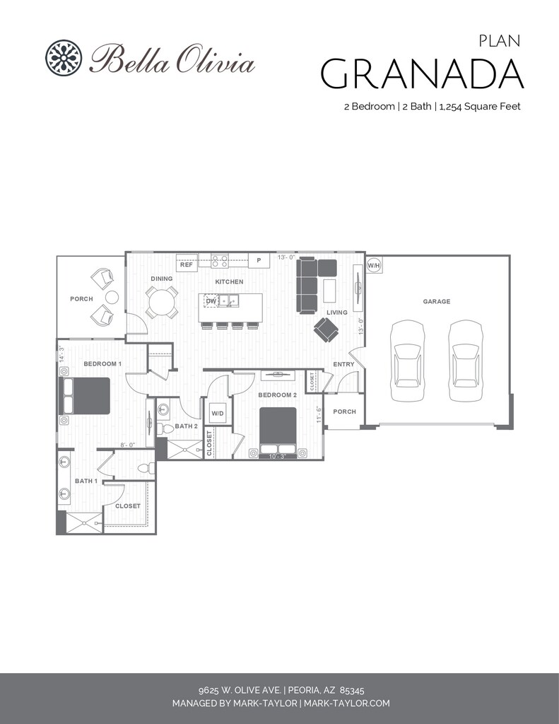 Apartment Model: 2 Bed/2 Bath2 Bedroom, 2 Bath, 1254 sq ftAvailable NowFloorplansPhotos![]()