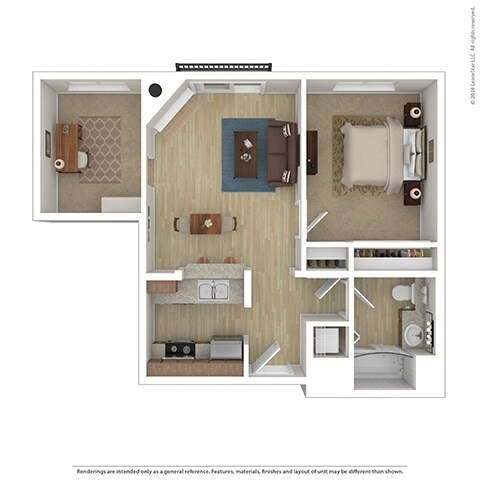 Studio 1 Bath S2 - Floorplan 2 1 Bedroom