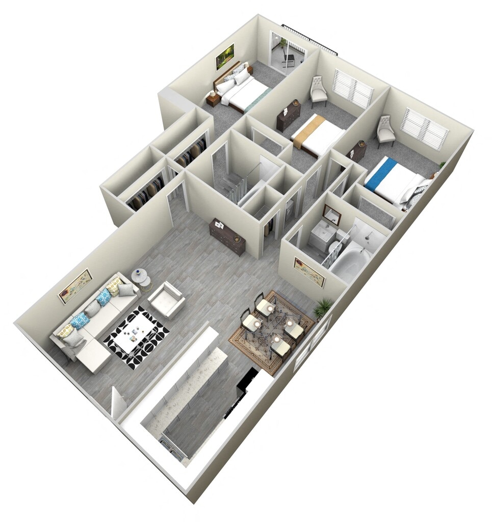 Apartment Model: 3 Bed 2 BathFrom $2,3953 Bedroom, 2 Bath, 987-1208 sq ftAvailable Now![]()