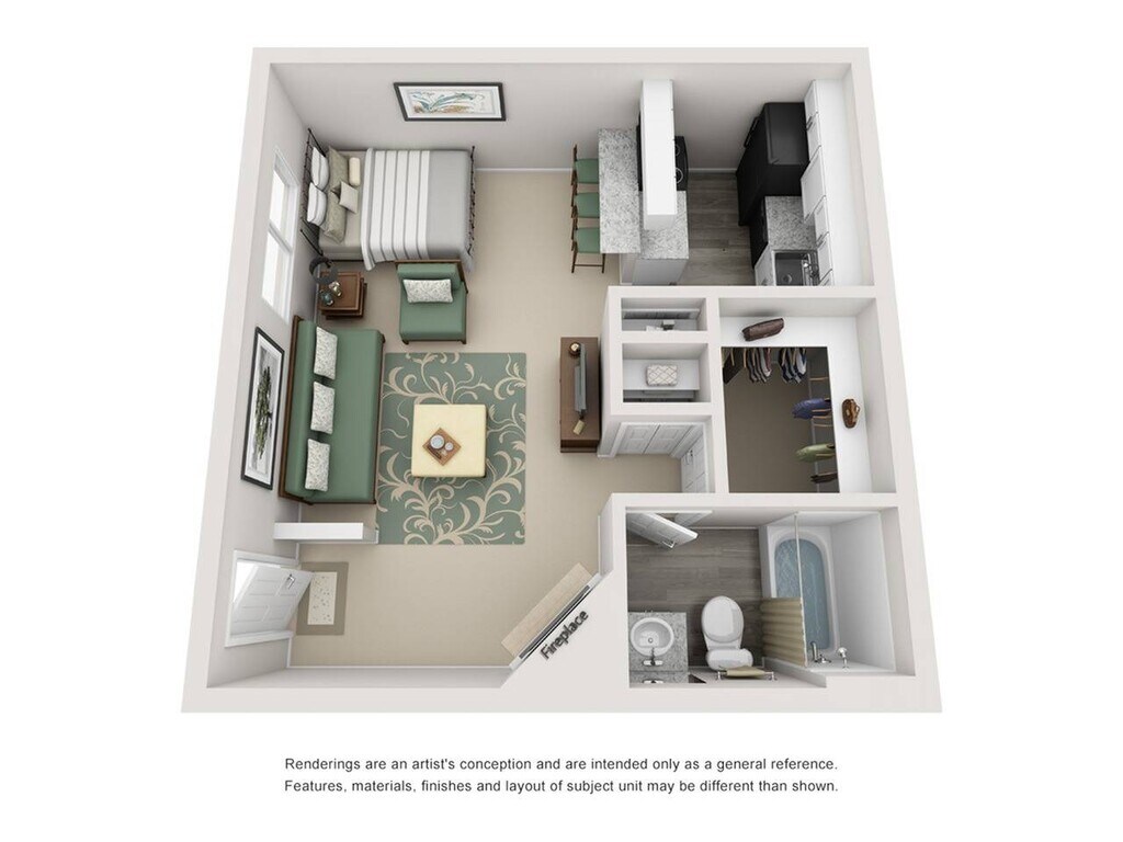 Studio, 1 Bath, 400 sq ftAvailable NowModel Gallery