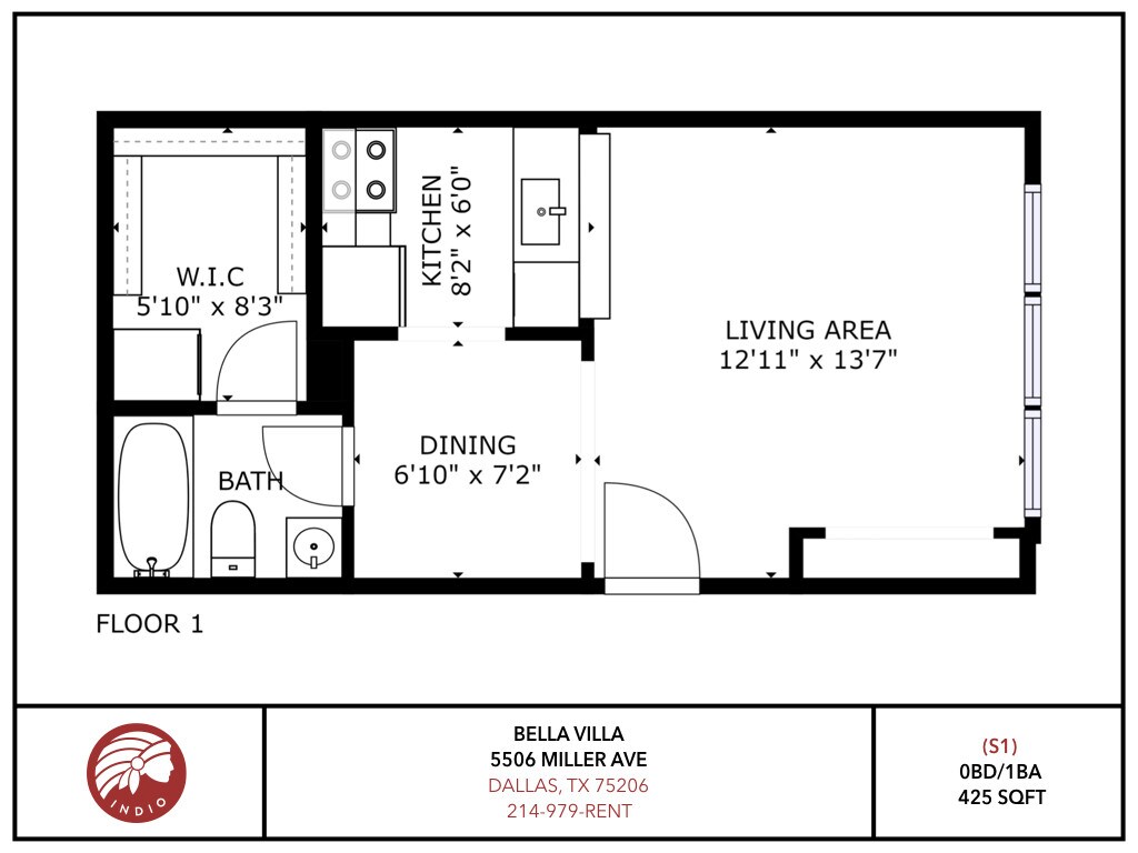 0 bed 1 bath - Floorplan 11 Apartment Unit: 208Apartment Model: 0 bed 1 bathStudio, 1 Bath, 425 sq ftAvailable December 12, 20251 Bedroom