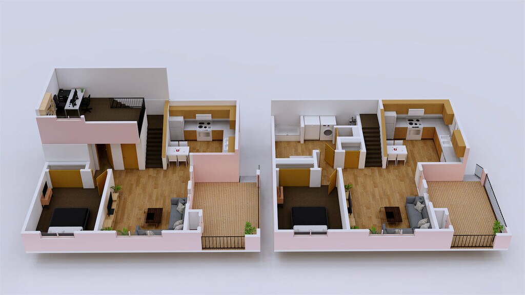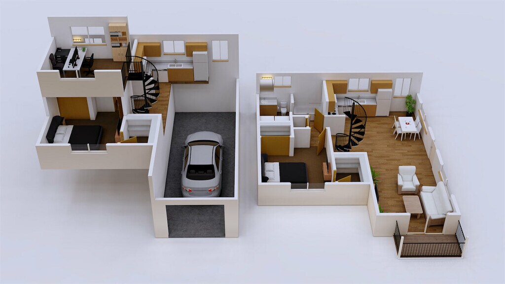 - Large Loft apartments with spiral staircases.