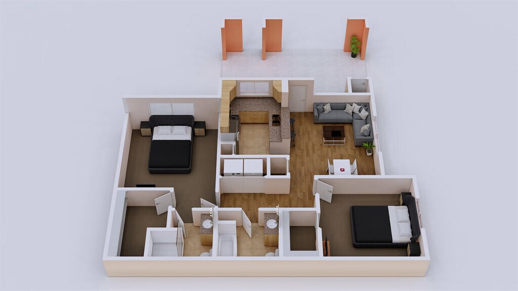 - Spacious 1, 2 & 3 Bedroom Floorplans
