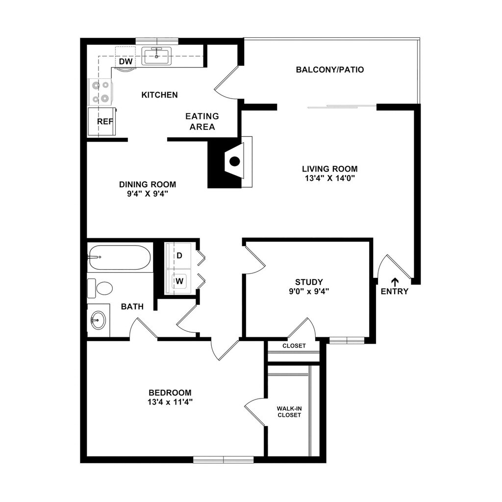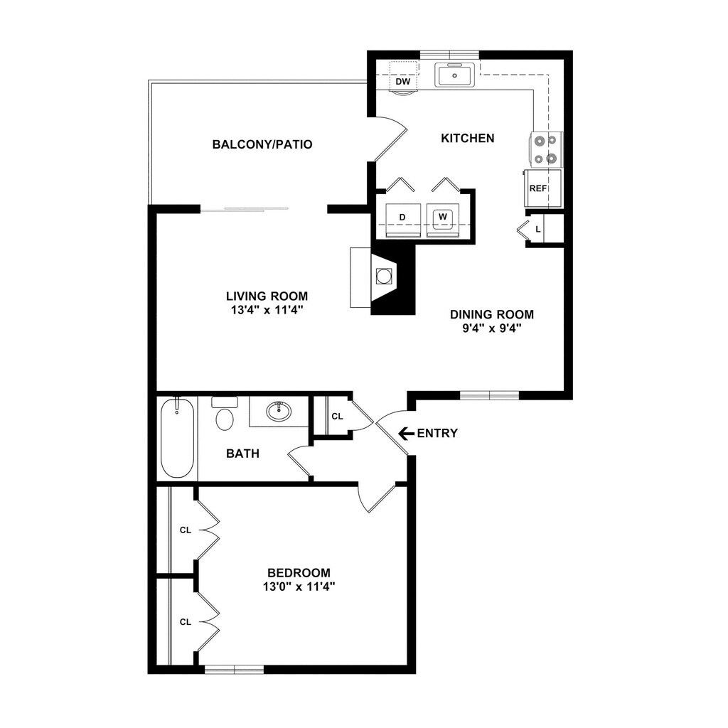 Apartment Model: A1 Upgrade1 Bedroom, 1 Bath, 600 sq ftAvailable Now![]()
