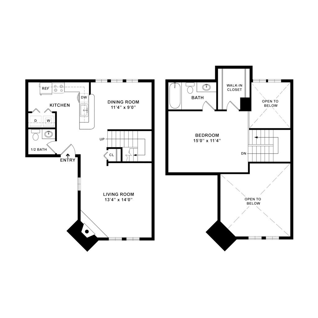 1 Bed, 1.5 Baths, 828 sq ftModel Gallery