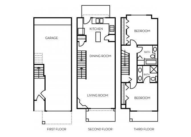- Two- and Three-Bedroom Tri-Level Townhomes