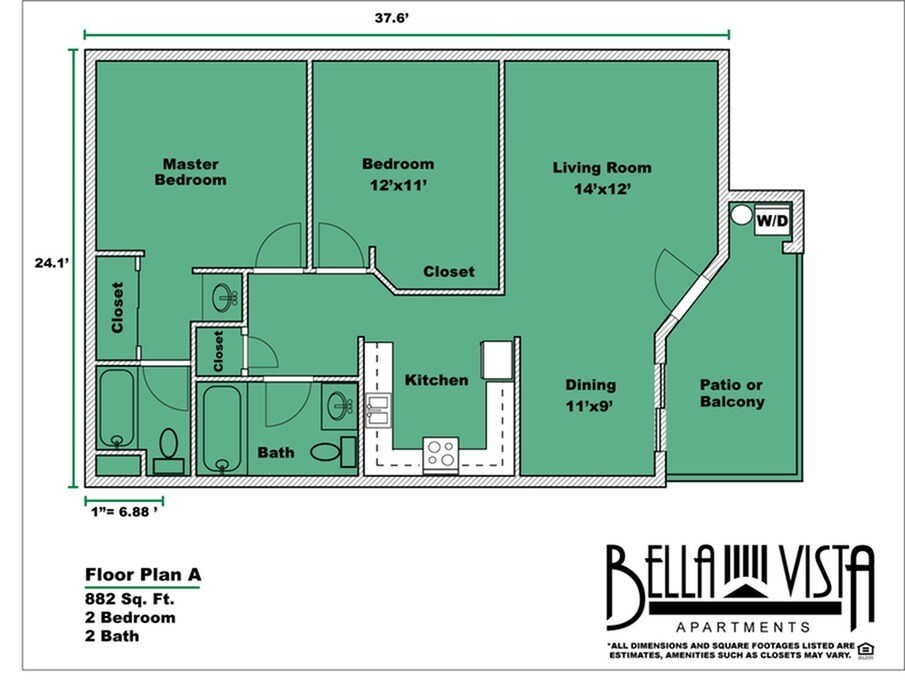 2x2 - Floorplan 11 Apartment Unit: 207Apartment Model: 2x22 Bedroom, 2 Bath, 881 sq ftAvailable NowFloorplan B