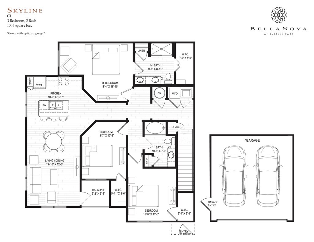BellaNova at JubiLee Park offers 1 to 3 Bedroom apartments starting from $1,610 and having 792–1,501 sq ft. Here is the current pricing and availability: