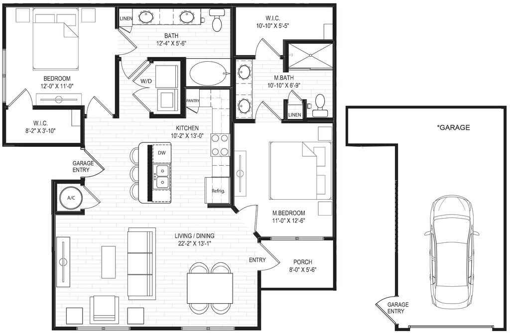 1 Bed, 1 Bath, 824 sq ftAvailable NowModel Gallery