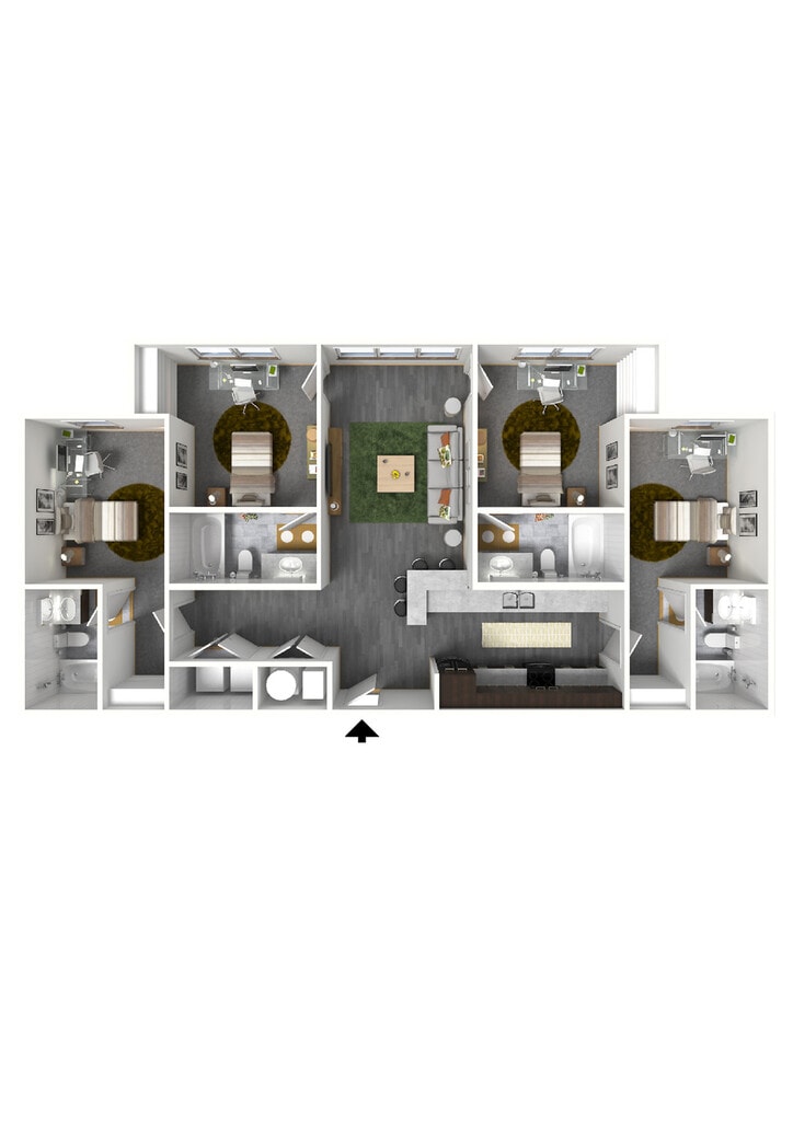 4x4 Standard - Floorplan 5 Apartment Unit: PrivateApartment Model: 4x4 Standard$8504 Bedroom, 4 Bath, 1347 sq ftAvailable NowApartment Unit: PrivateApartment Model: 4x4 Standard$8504 Bedroom, 4 Bath, 1347 sq ftAvailable August 7, 20264+4 Loft Premium