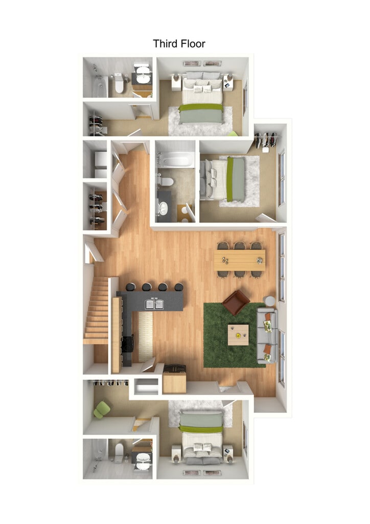 3x3 - Floorplan 4 Apartment Unit: PrivateApartment Model: 3x3$6053 Bedroom, 3 Bath, 1134 sq ftAvailable NowApartment Unit: PrivateApartment Model: 3x3$6053 Bedroom, 3 Bath, 1134 sq ftAvailable August 12, 20264 Bedrooms
