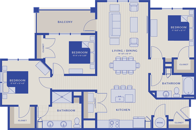 Apartment Model: The RamFrom $1,4401 Bedroom, 1 Bath, 822 sq ftAvailable Now![]()