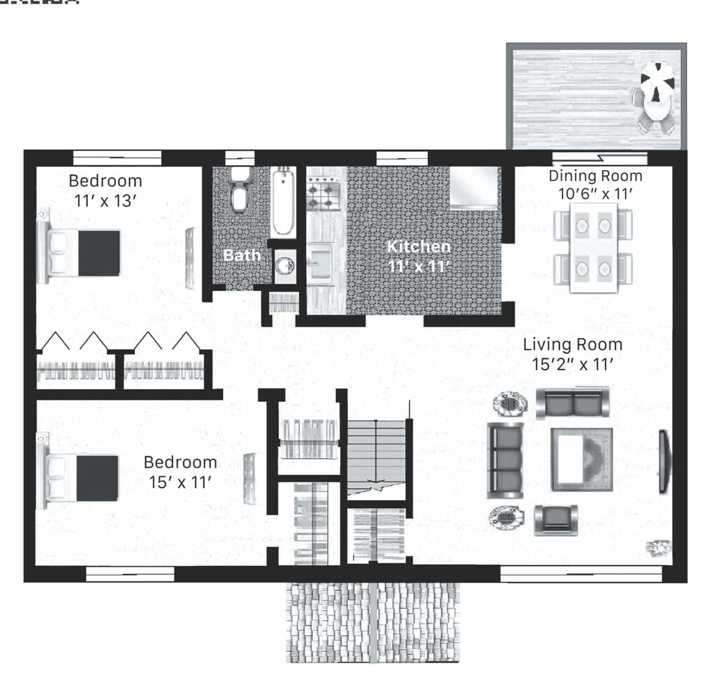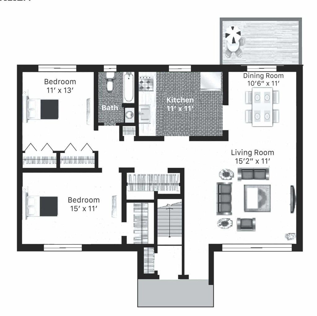 Apartment Model: 2×1 First FloorFrom $1,5002 Bedroom, 1 Bath, 1100 sq ftAvailable Now![]()