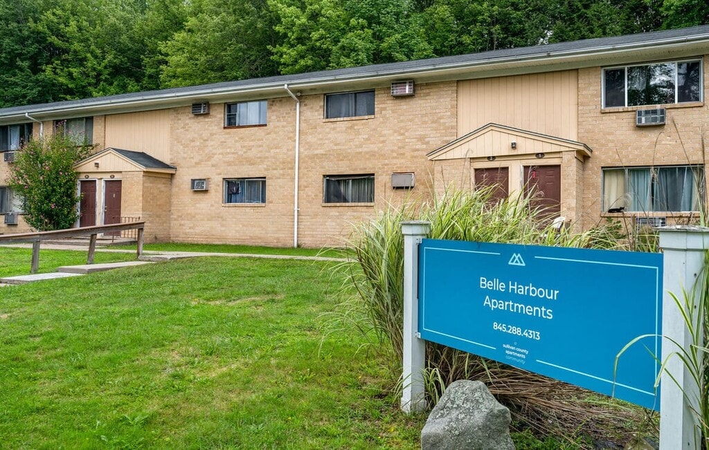 Nestled in the beautiful Catskill Mountains, Belle Harbour offers comfortable suburban living in Woodridge, NY, surrounded by lush grounds and crisp mountain air. Our well-kept units, ranging from 880 – 1,150 square feet, include 1- and 2-bedroom options, with beautiful features available, including subway-tiled bathrooms and backsplashes, vinyl plank flooring, eat-in kitchens, and private balconies/patios, so you’re sure to find the perfect apartment to call home. Our community also includes amenities like an on-site laundry facility and convenient guest parking. Belle Harbour is conveniently located to nearby shopping, dining, and some Catskill Mountains exclusives – such as the Holiday Mountian Ski Resort and Resorts World Catskills Casino – are just minutes away. You’ll have easy access to nearby highways and public transportation or enjoy walking on one of the many scenic trails. Schedule your tour today! We’re looking forward to welcoming you home!