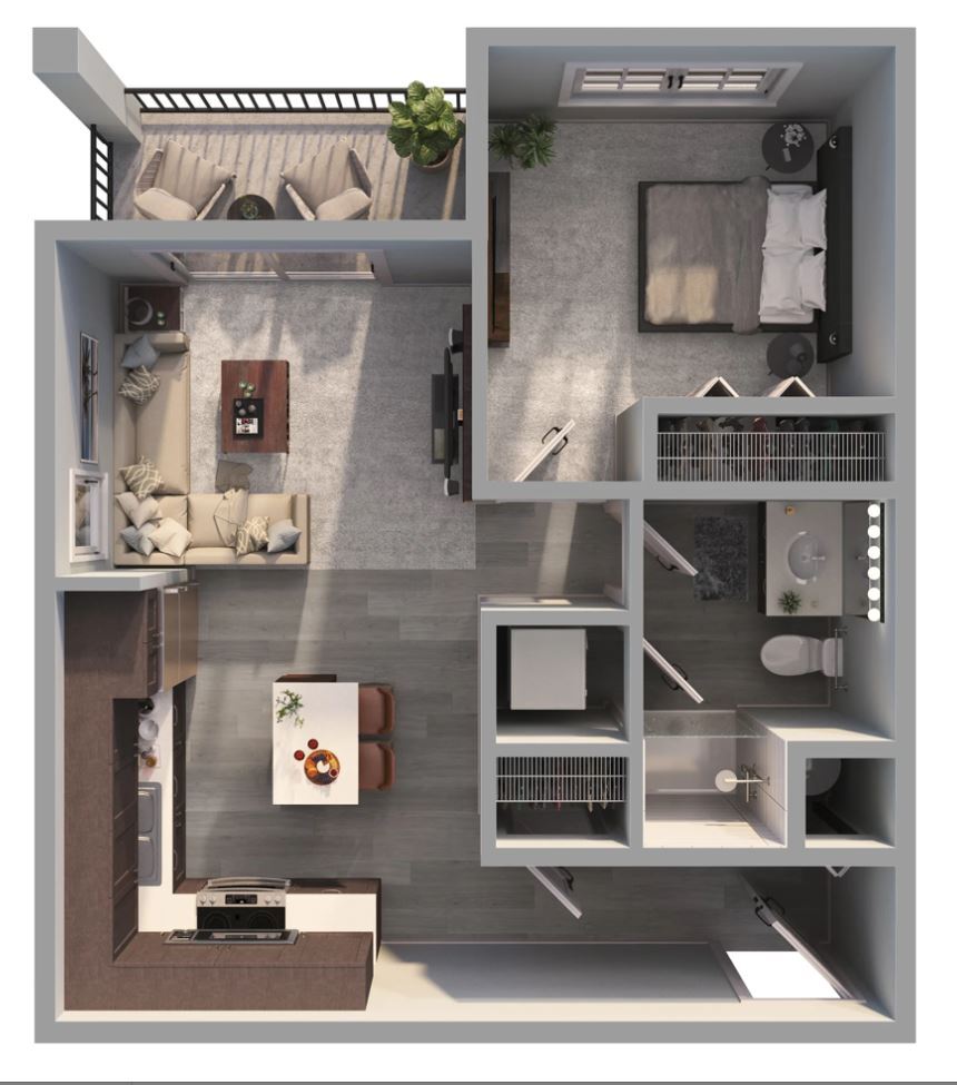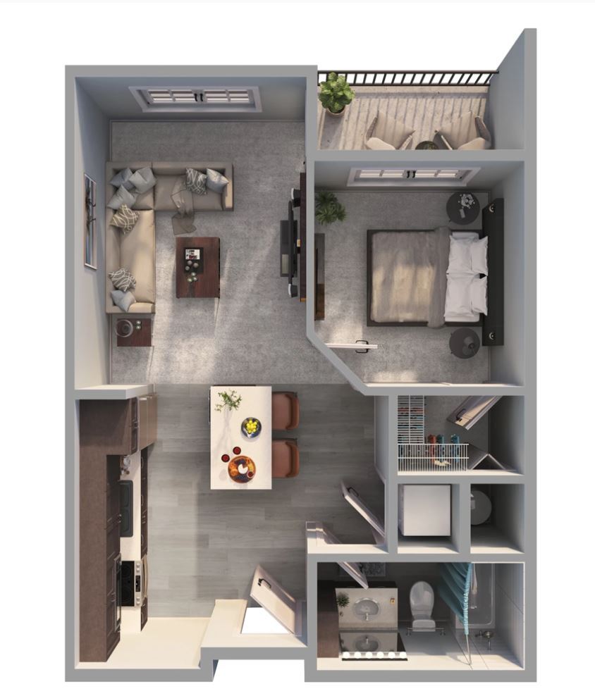 1 Bed, 1 Bath, 603 sq ftModel Gallery