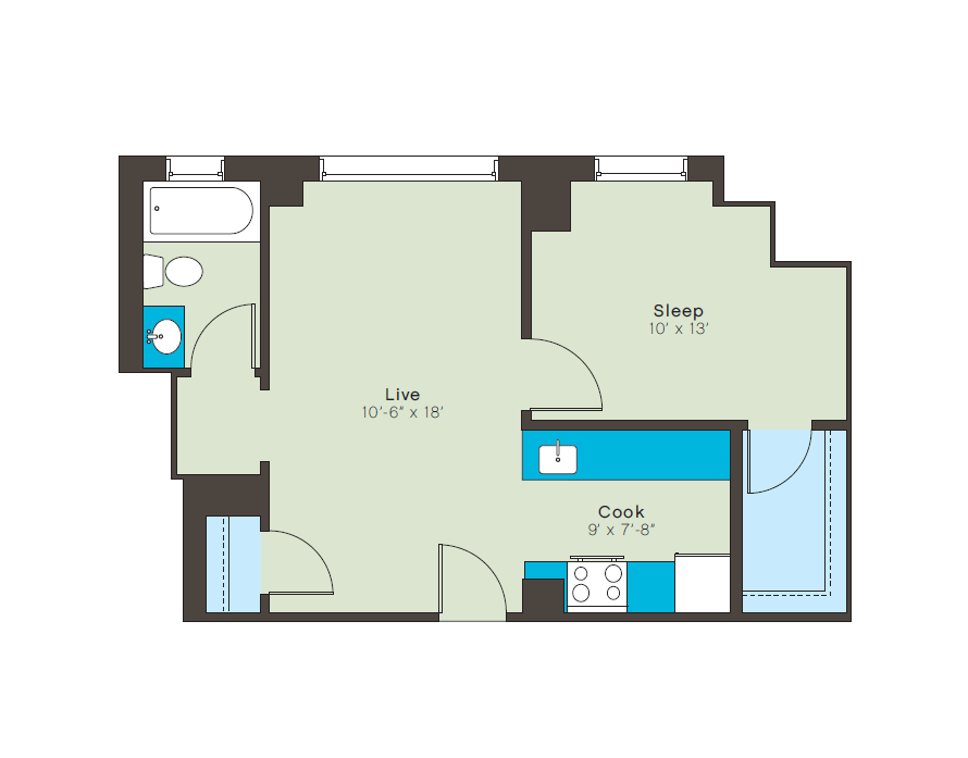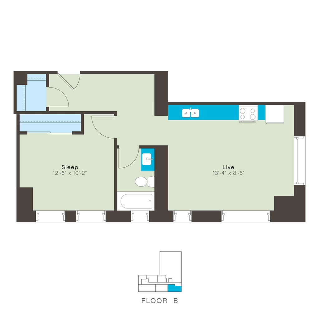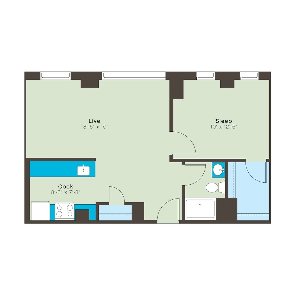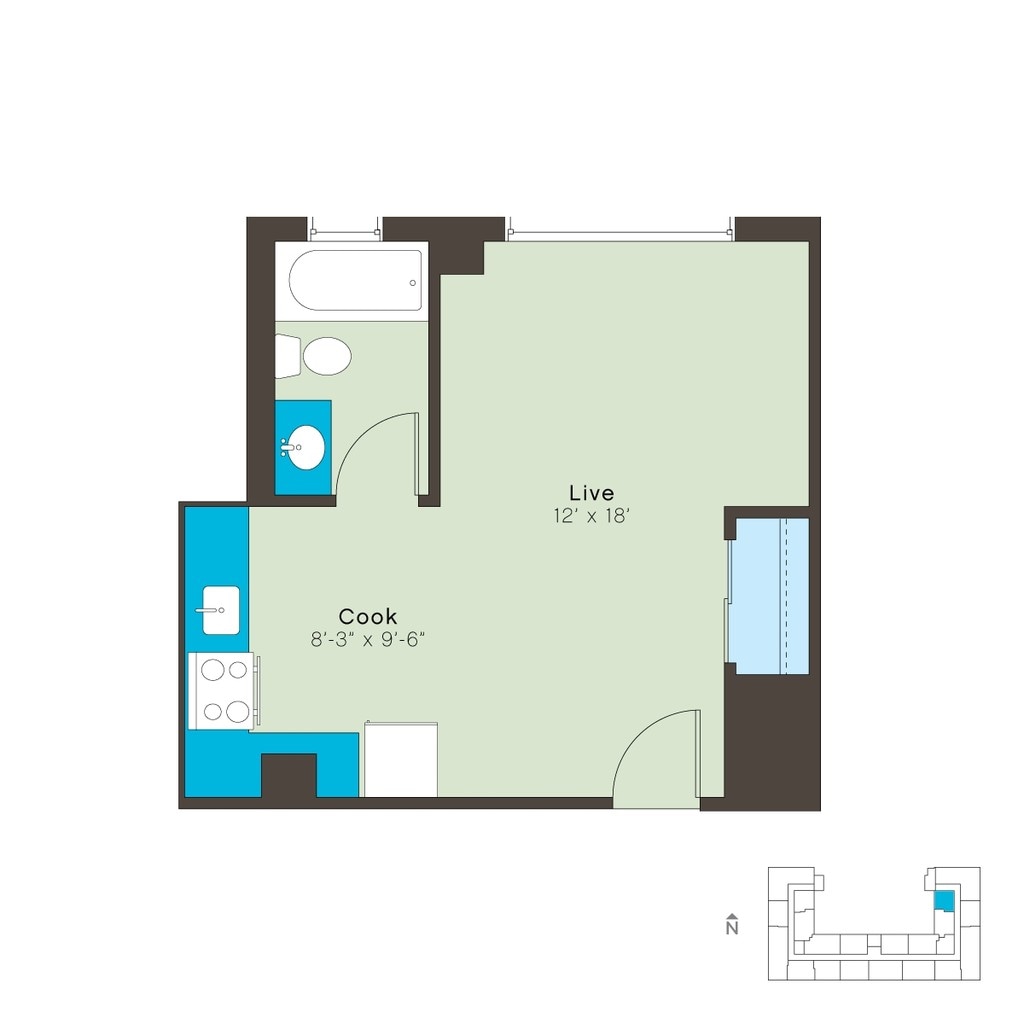 Studio, 1 Bath, 480 sq ftAvailable NowModel Gallery