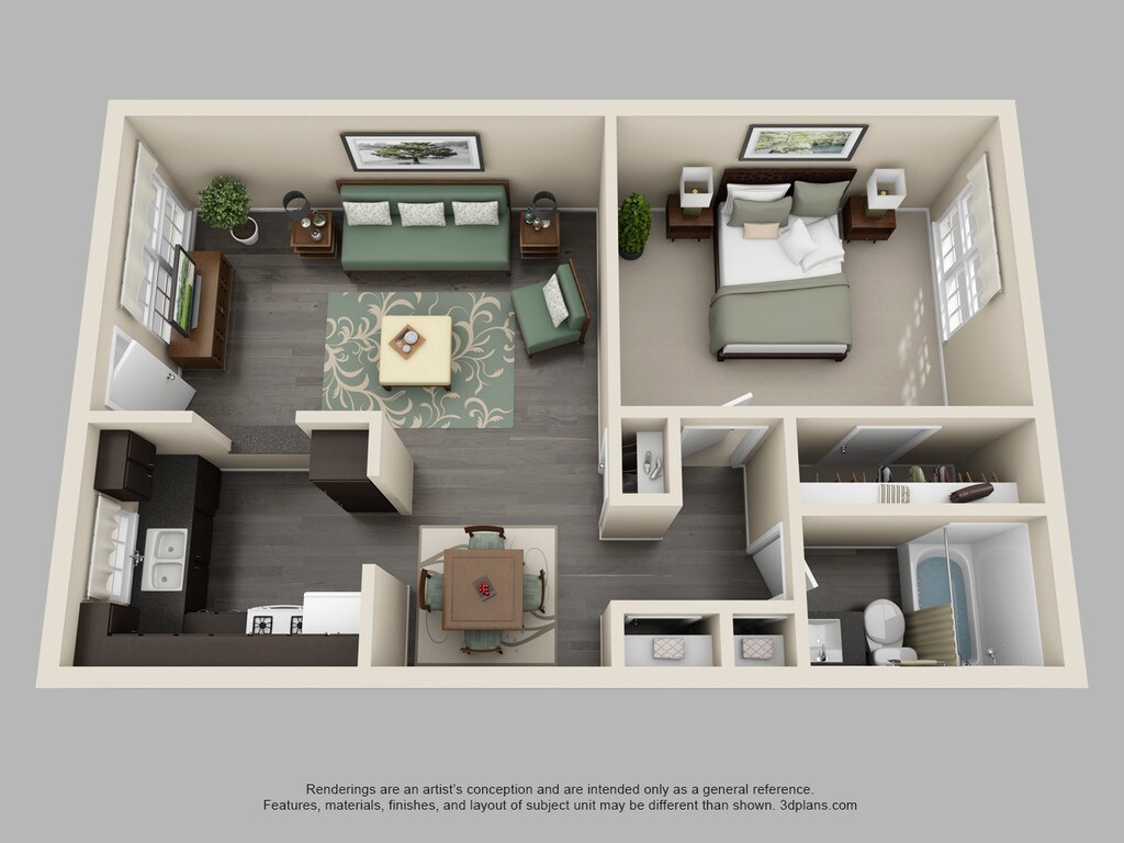 1 Bed, 1 Bath, 589 sq ftModel Gallery