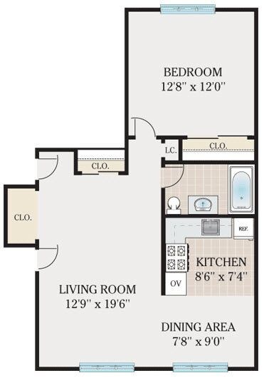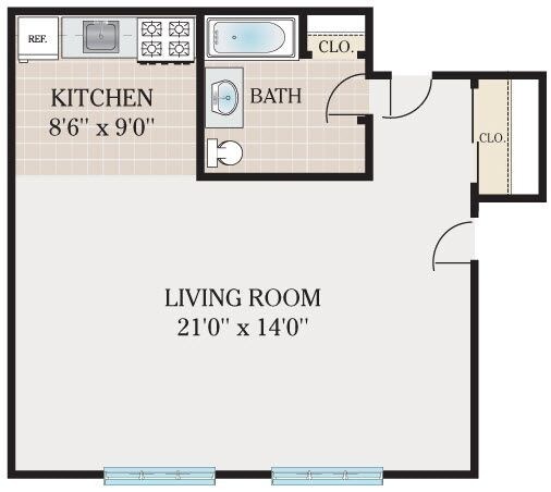 Apartment Model: Studio LargeStudio, 1 Bath, 490 sq ftUnavailableStudio Large - Floorplan 1 1 Bedroom