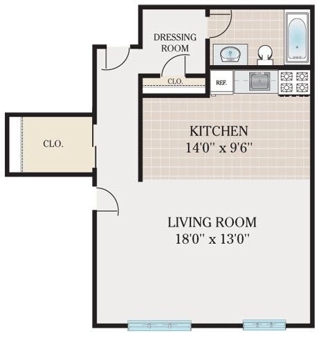 Apartment Model: Standard StudioStudio, 1 Bath, 460 sq ftUnavailableStandard Studio - Floorplan 1 Studio Large