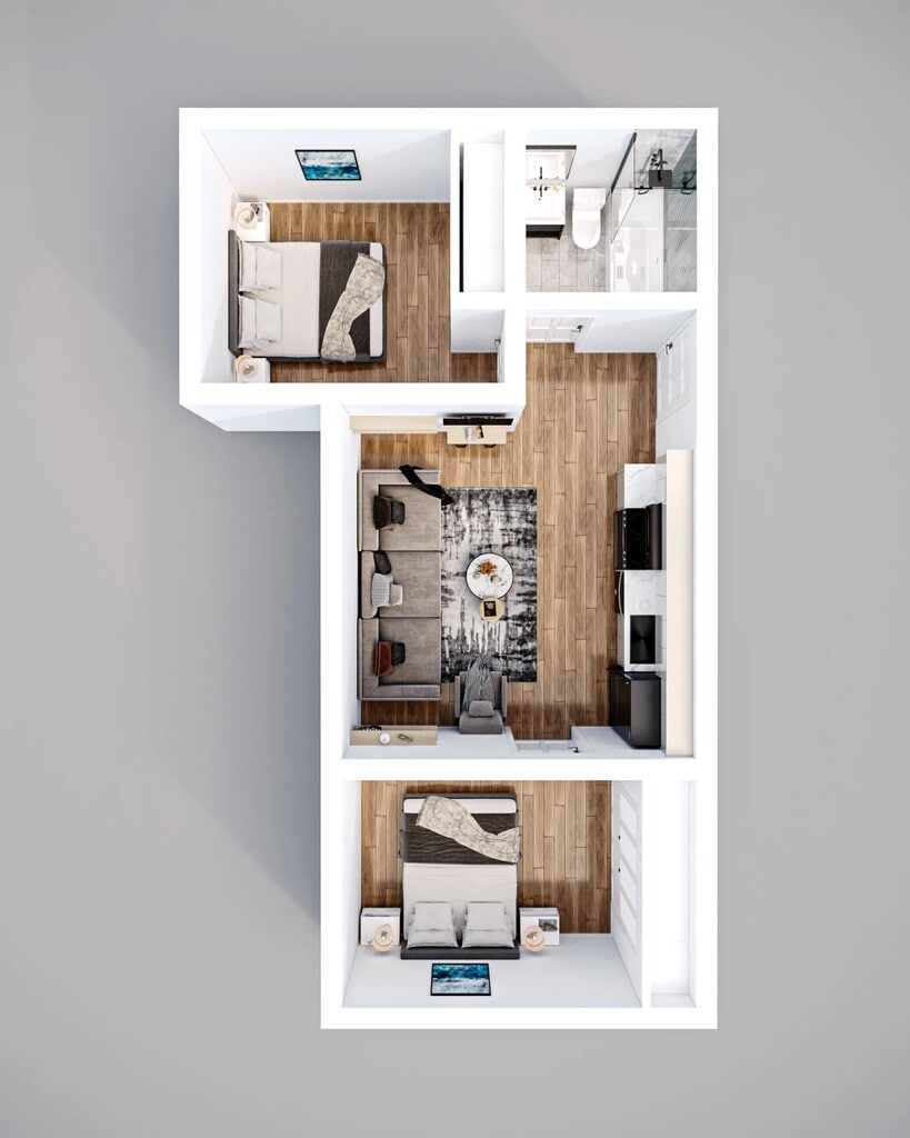 2 Beds, 1 Bath, 580-680 sq ftModel Gallery