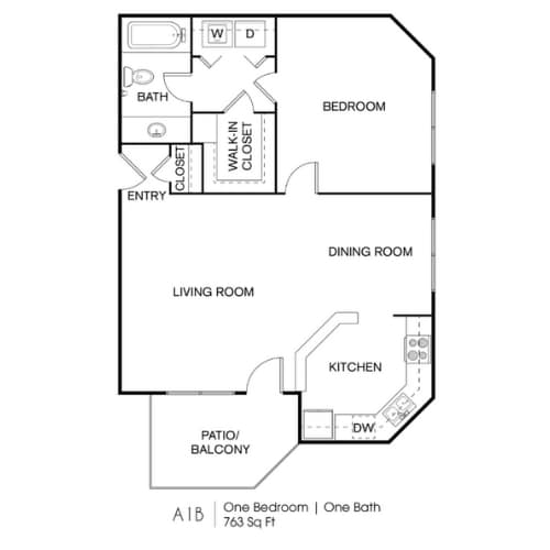 Apartment Model: 1x1From $1,5101 Bedroom, 1 Bath, 763 sq ftAvailable NowFloor plans are artist's rendering. All dimensions are approximate. Actual product and specifications may vary in dimension or detail. Not all features are available in every rental home. Please see a representative for details.