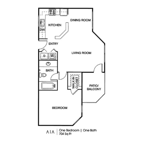 Apartment Model: 1x1From $1,0991 Bedroom, 1 Bath, 704 sq ftAvailable NowFloor plans are artist's rendering. All dimensions are approximate. Actual product and specifications may vary in dimension or detail. Not all features are available in every rental home. Please see a representative for details.