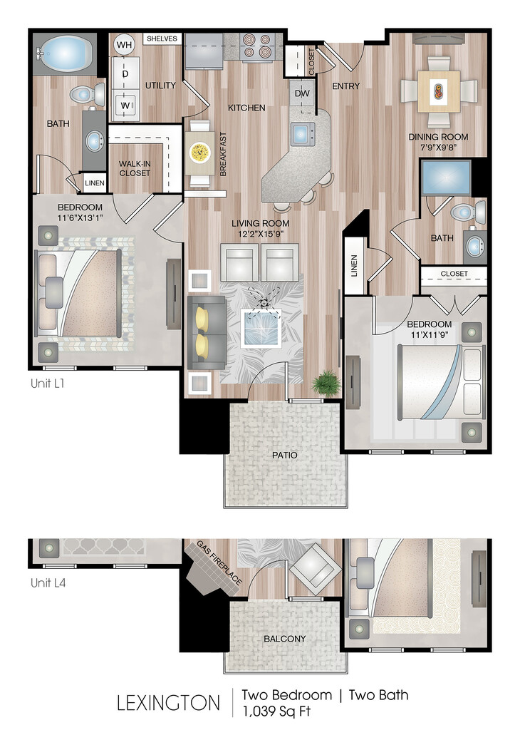 2 Beds, 2 Baths, 1270 sq ftAvailable NowLargest 2 BedroomThis is the largest 2 Bedroom at this PropertyModel Gallery