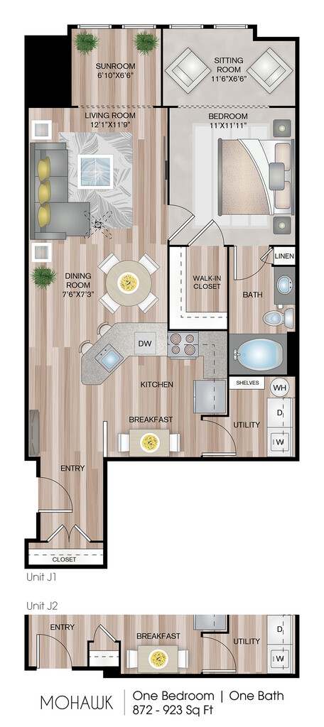 Mohawk with Sunroom - Floorplan 1 Apartment Unit: 01-248Apartment Model: Mohawk with SunroomFrom $1,9741 Bedroom, 1 Bath, 872 sq ftAvailable January 25, 2026Granite (Income Restricted)