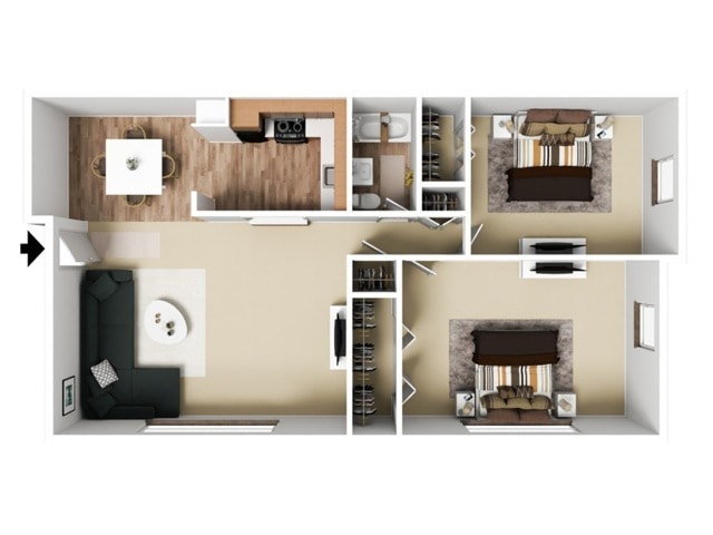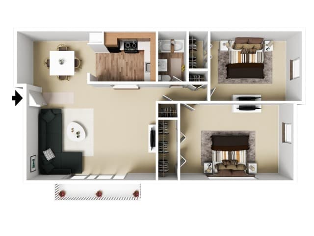 2 Beds, 1 Bath, 900 sq ftModel Gallery