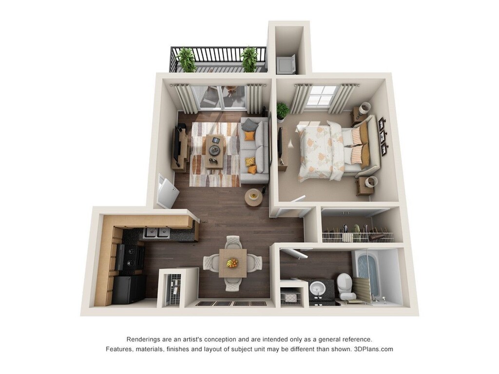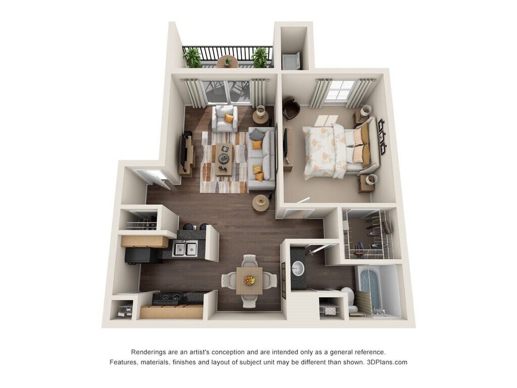 1 Bed, 1 Bath, 653 sq ftModel Gallery
