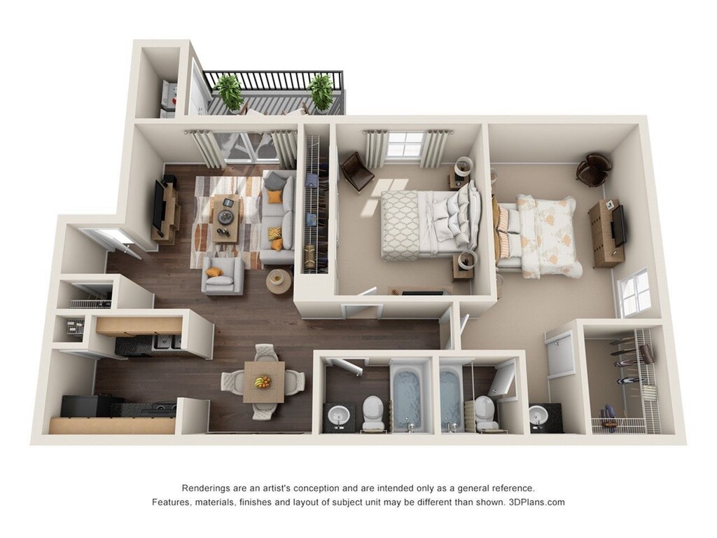 2 Beds, 2 Baths, 1000 sq ftModel Gallery