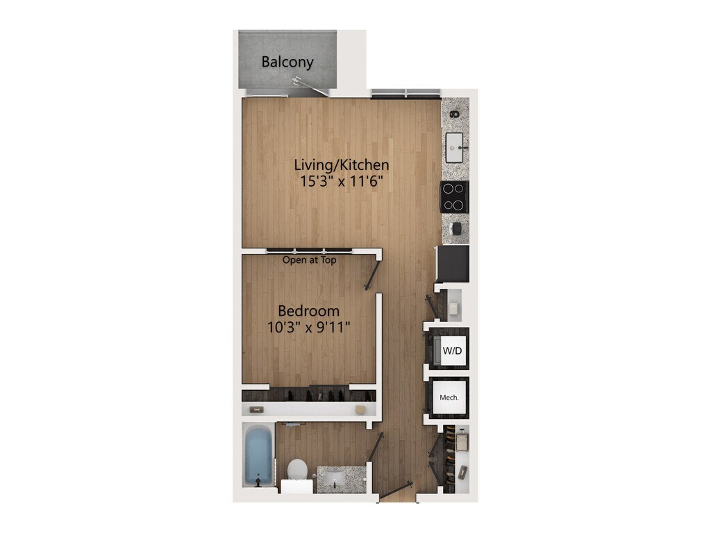 Studio, 1 Bath, 558-615 sq ftAvailable NowModel Gallery