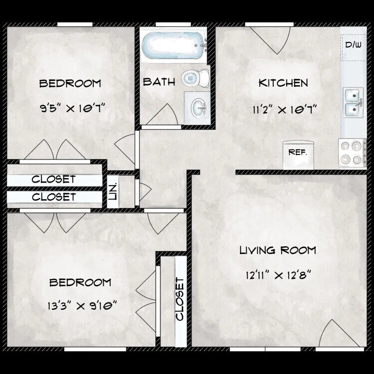 2 Beds, 1 Bath, 900 sq ftAvailable NowModel Gallery