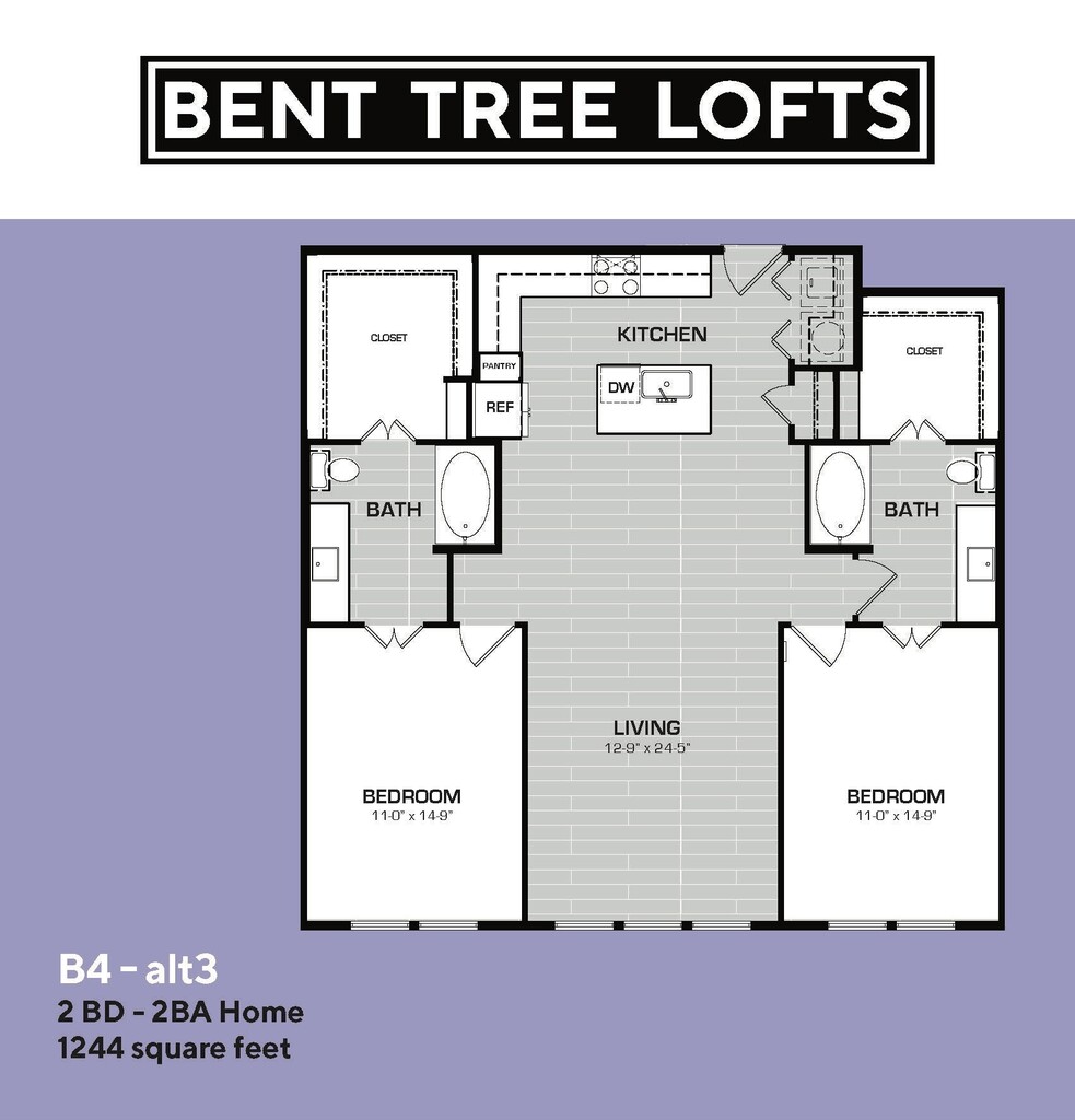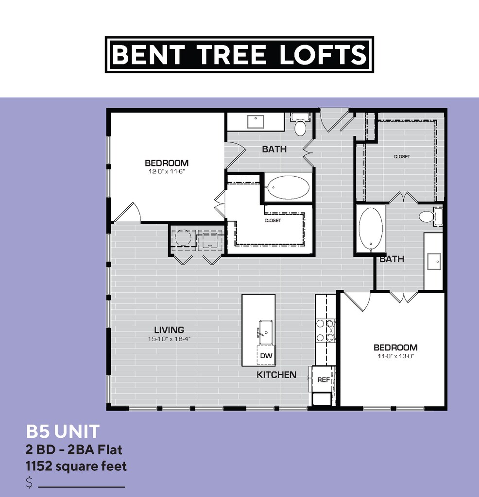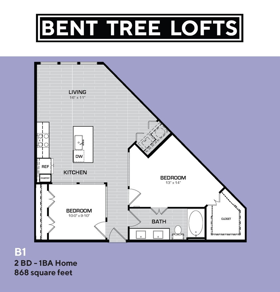 Bent Tree Lofts offers Studio to 2 Bedroom apartments starting from $1,329 and having 450–1,244 sq ft. Here is the current pricing and availability: