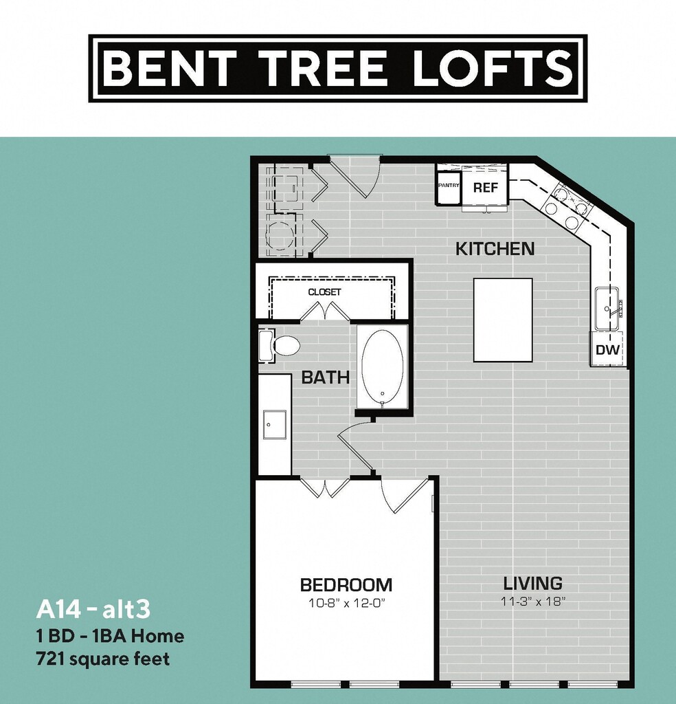 Bent Tree Lofts offers Studio to 2 Bedroom apartments starting from $1,359 and having 472–1,260 sq ft. Here is the current pricing and availability: