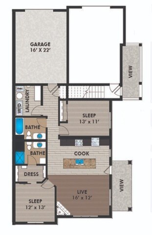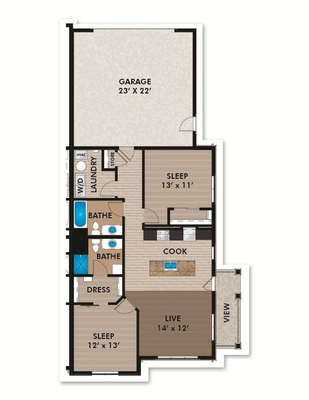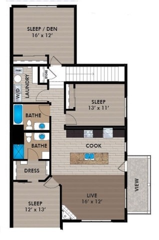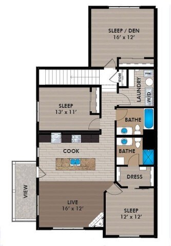2 Bed/2 Bath - Quadplex D2 - Floorplan 2 3 Bedrooms