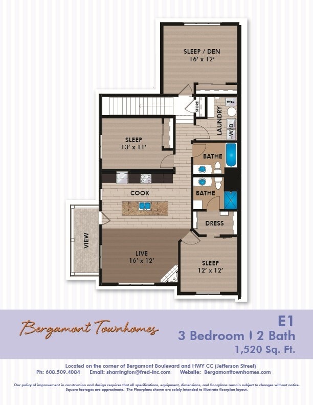 Apartment Model: 3 Bed/2 Bath - Quadplex E1$2,4053 Bedroom, 2 Bath, 1520 sq ftUnavailable![]()