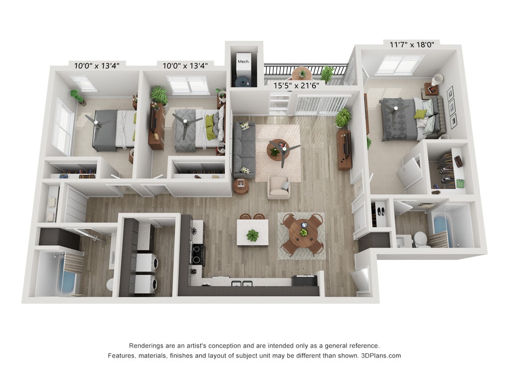 Apartment Model: 3 Bedroom$2,3153 Bedroom, 2 Bath, 1292 sq ftAvailable Now![]()
