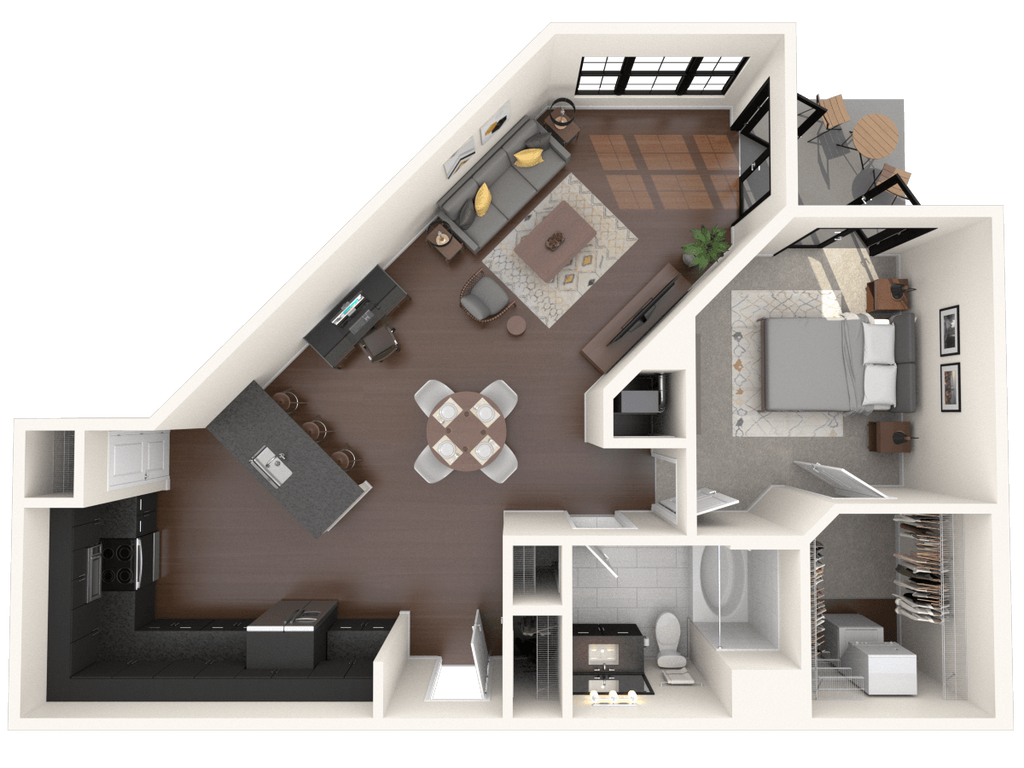 Apartment Model: Montgomery Loft AFrom $2,3071 Bedroom, 1 Bath, 1058 sq ftAvailable Now![]()
