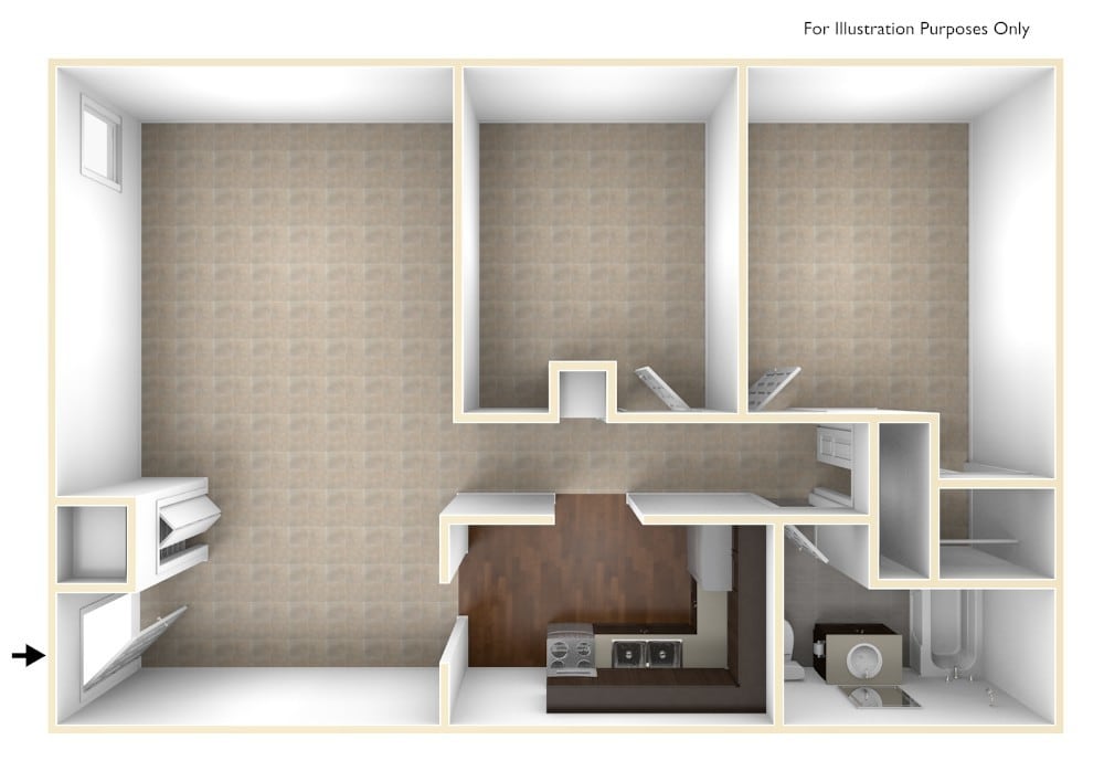 Apartment Model: 2 Beds, 1 bath2 Bedroom, 1 Bath, 739 sq ftUnavailable![]()