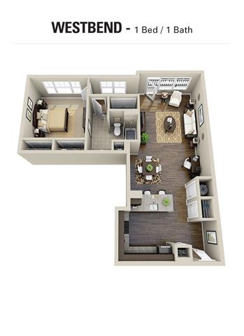 1 Bed, 1 Bath, 847 sq ftAvailable NowModel Gallery