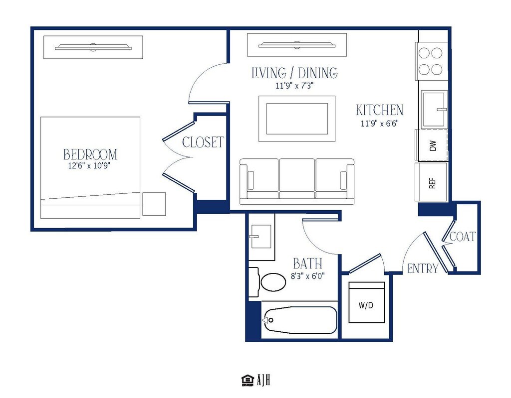 1 Bed, 1 Bath, 632 sq ftAvailable NowModel Gallery