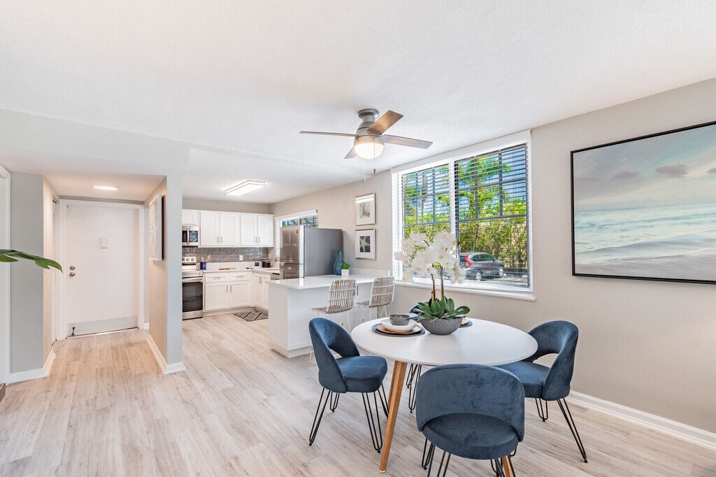 - Wood-Inspired Plank Flooring in Kitchen & Bat