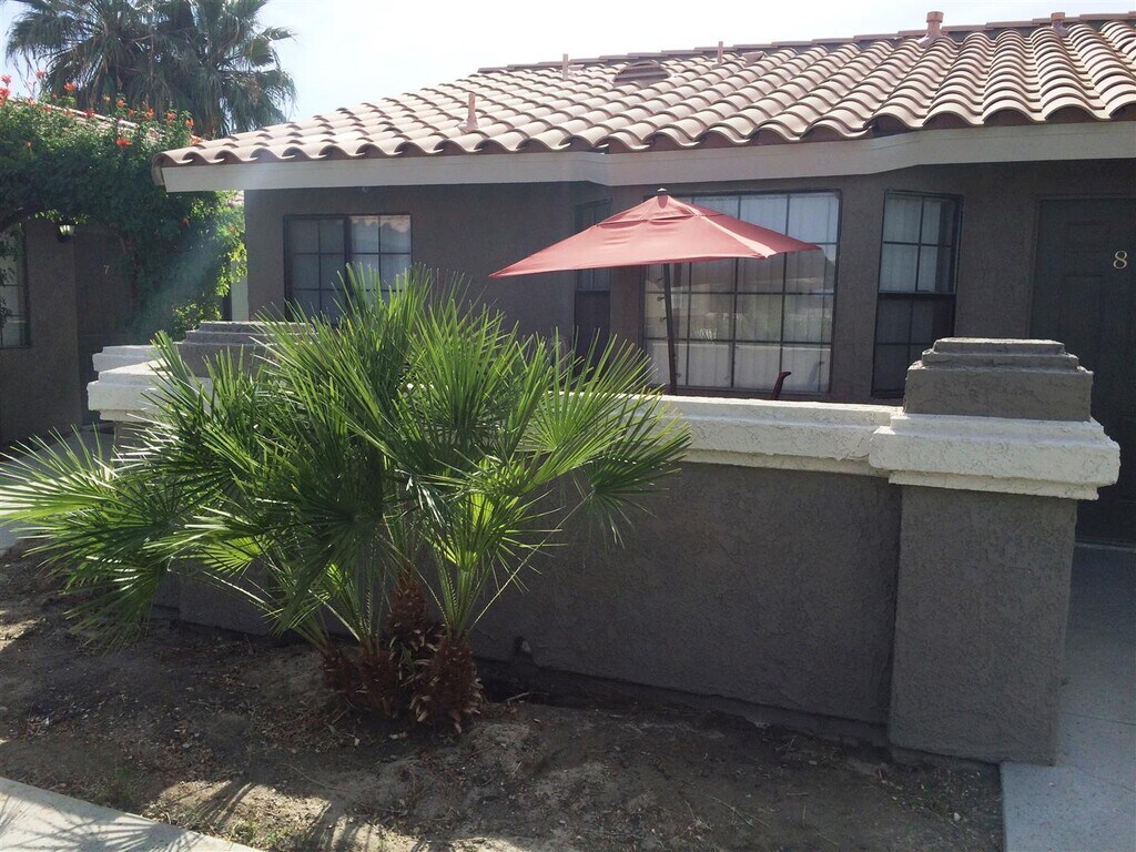 The property is located down the street from the Bermuda Dunes Airport and the Bermuda Dunes Country Club and the local elementary school. It is also close to retail amenities and the 10 freeway. The Bermuda Dunes Courtyard is a 10-unit apartment complex located in Bermuda Dunes. All units are 2-bedroom 2 bath single-story condo-style floorplans. The property was completely remodeled in 2016. Additional renovations were made in 2019 to refinish and resurface the pool area as well as exterior upgrades and upgrades to the landscaping area. All remodeled units have laminate flooring, upgraded countertops, central air-conditioning, fireplaces, and washer-dryers in the unit. Each unit comes with a double-car garage and there is a common courtyard at the property as well. Sorry, no pets.